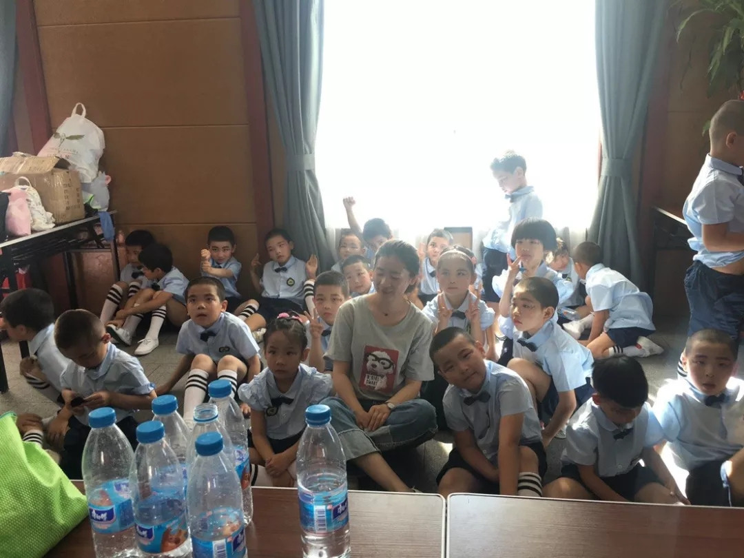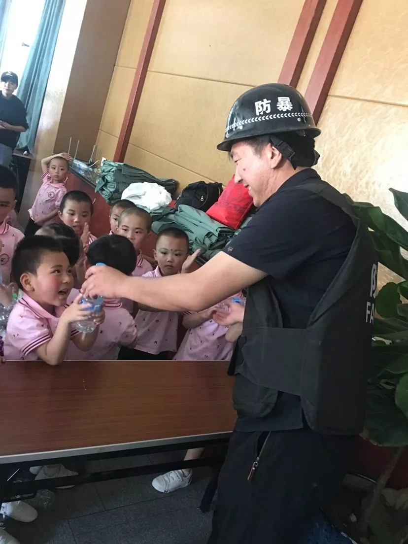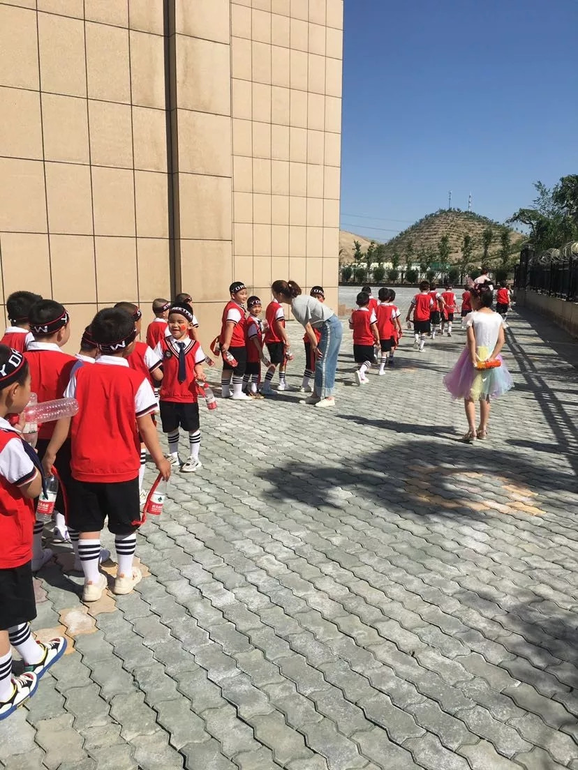 燕新国际家居产业园工作人员给小朋友们递水